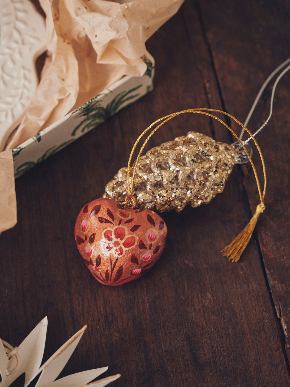 Clara gently hangs the heart ornament by the window. "A touch of charm for any room," she says with a smile. Anna continues, "The floral design brings a lovely hint of nature indoors, brightening our home with warmth and beauty."