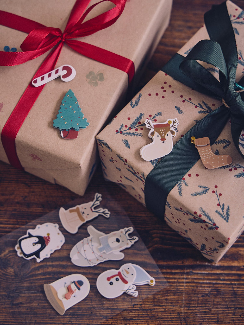 "These Christmas stickers bring such joy to holiday crafts," Anna smiles, admiring the festive designs. Clara adds, "They are perfect for adding a charming touch to cards and gifts, making each creation feel truly special."