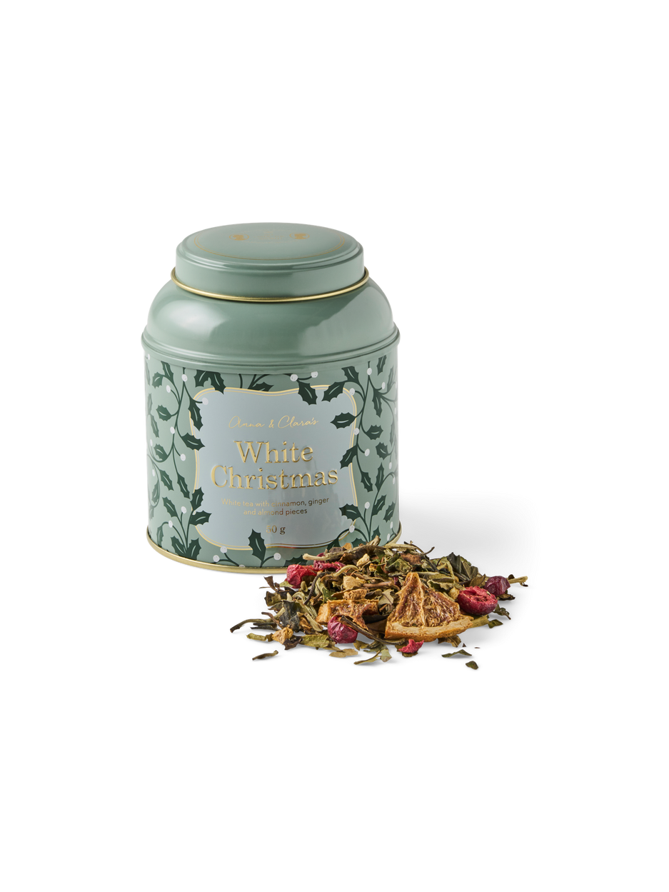 Clara gently places the Christmas tea tin on the table. "A delightful way to celebrate the season," she says warmly. Anna adds, "The charming tin makes a lovely gift and keeps the tea fresh for cosy winter moments."