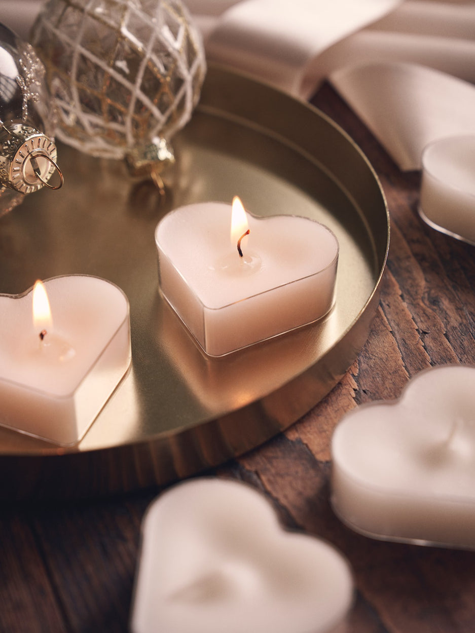 The soft glow of heart tealights brings warmth to any gathering. "They add a touch of romance to the table setting," Clara says. Anna adds, "Their charming shapes and hues create a delightful atmosphere for cherished moments."