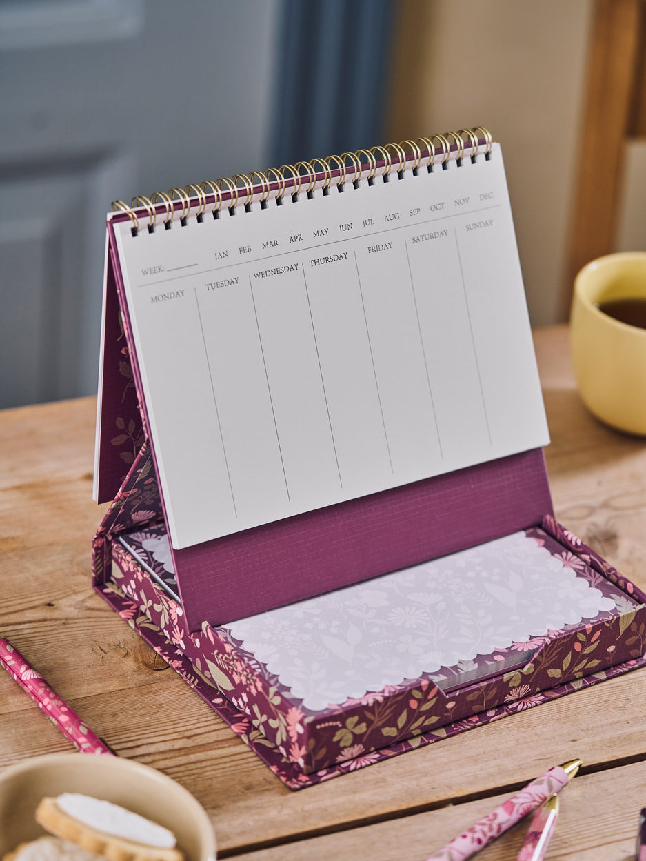 "This desk planner is a delightful way to keep track of the week," Anna notes as she flips through the floral pages. Clara adds, "A touch of charm and organisation for any desk."