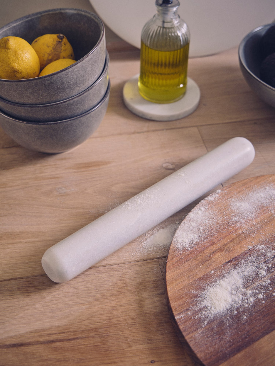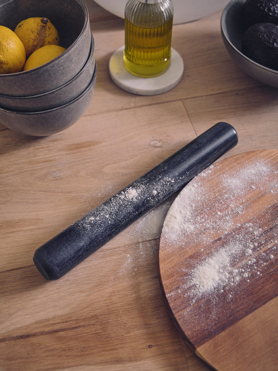 "Such a fine marble rolling pin graces our kitchen," Anna notes with delight. "Indeed, it lends itself to crafting the most exquisite pastries," Clara observes, admiring its cool touch and smooth surface.