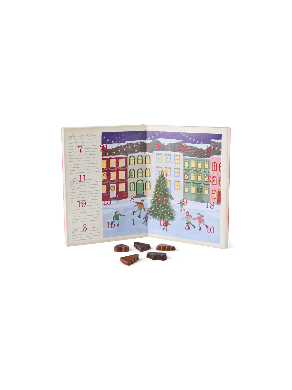 "Each day brings a delightful surprise," Anna giggles as she opens the Advent chocolate calendar. Clara observes, "A charming way to count down to Christmas with sweet treats hidden behind every window."