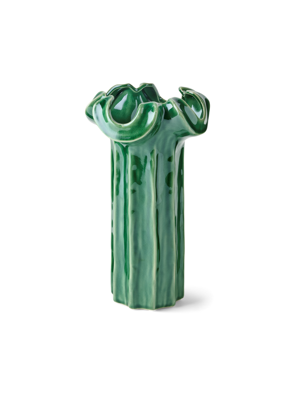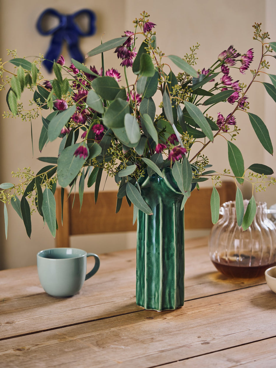 "Such a charming piece to grace one's home," Clara notes, admiring the vase's glossy finish. "Indeed, it adds a touch of nature to any setting," Anna agrees, envisioning it filled with fresh blooms.