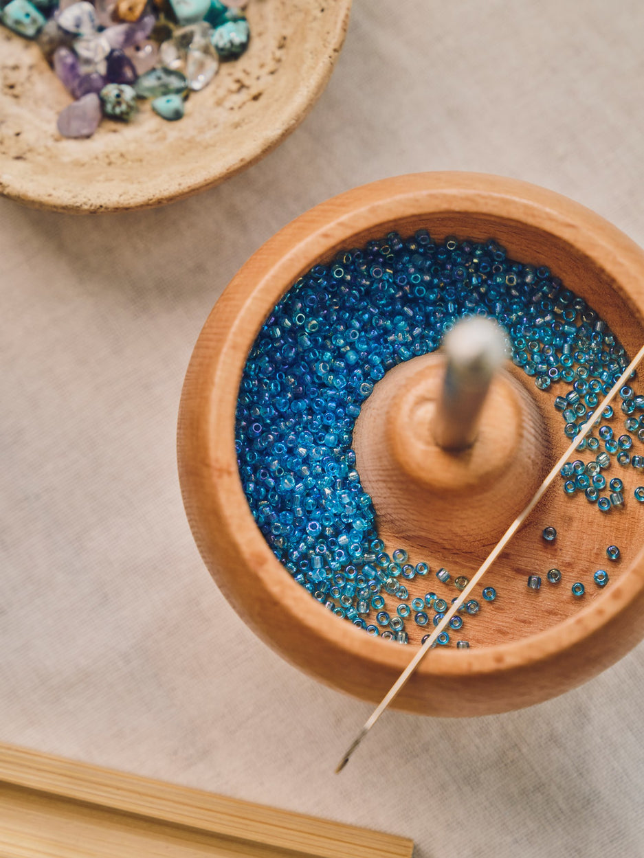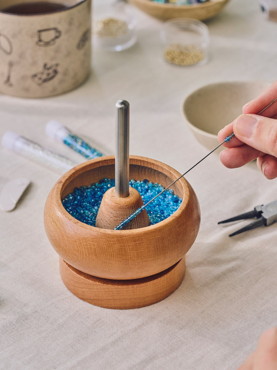 "With this bead spinner, threading becomes a swift and enjoyable task," Anna notes, watching the spindle whirl. Clara, arranging her beads, observes, "It truly transforms our crafting afternoons into a seamless flow of creativity."