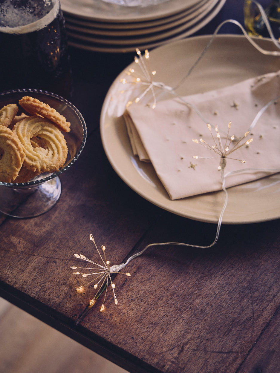 Anna drapes the LED string lights across the shelf, delighting in their cosy shimmer. "They bring joy to evening suppers and quiet corners," Clara says. "And they are wonderfully practical to arrange on tables or mantelpieces," Anna adds.