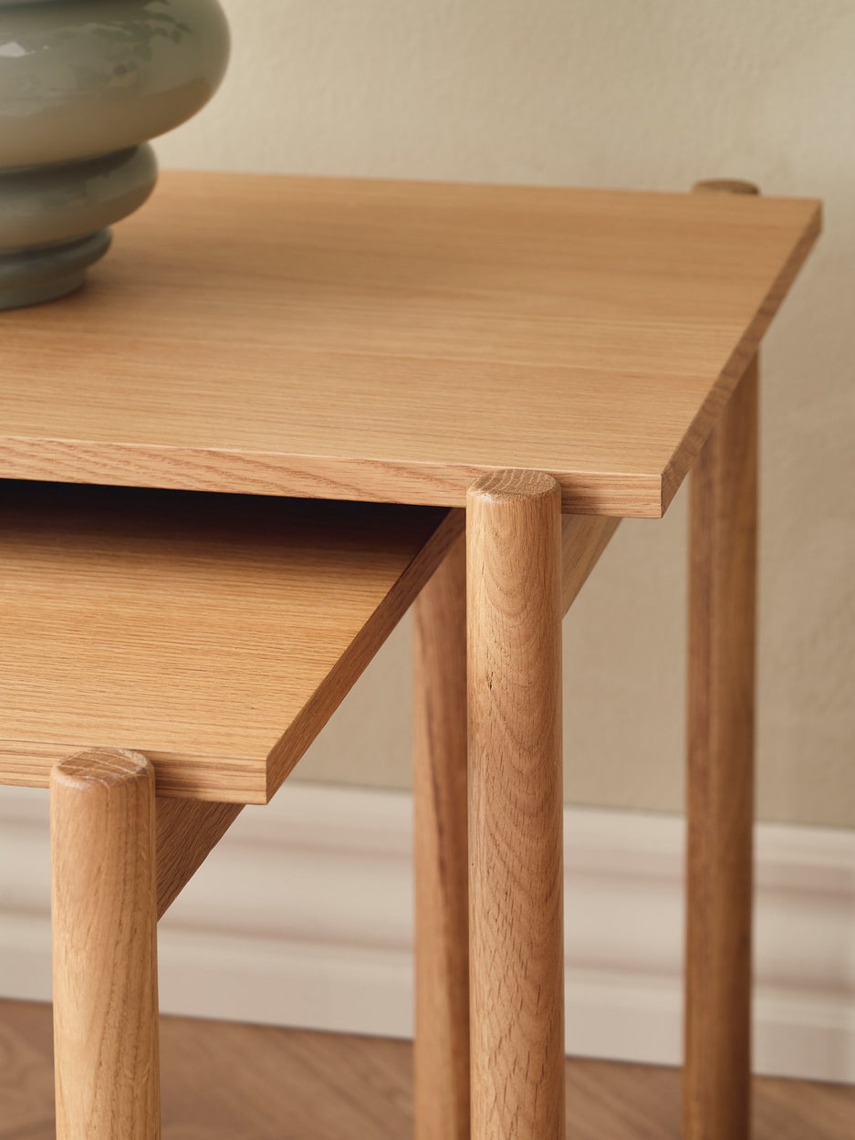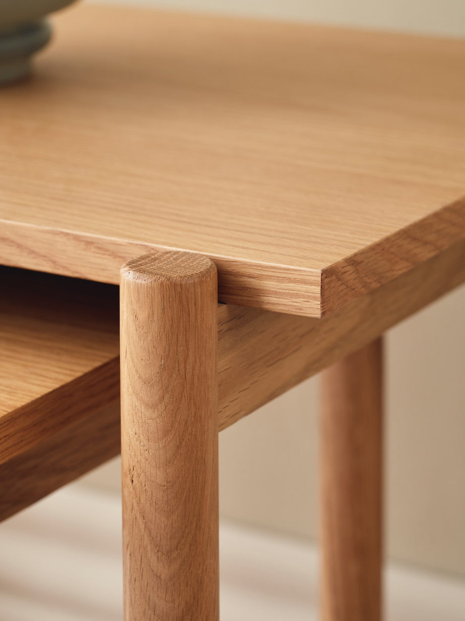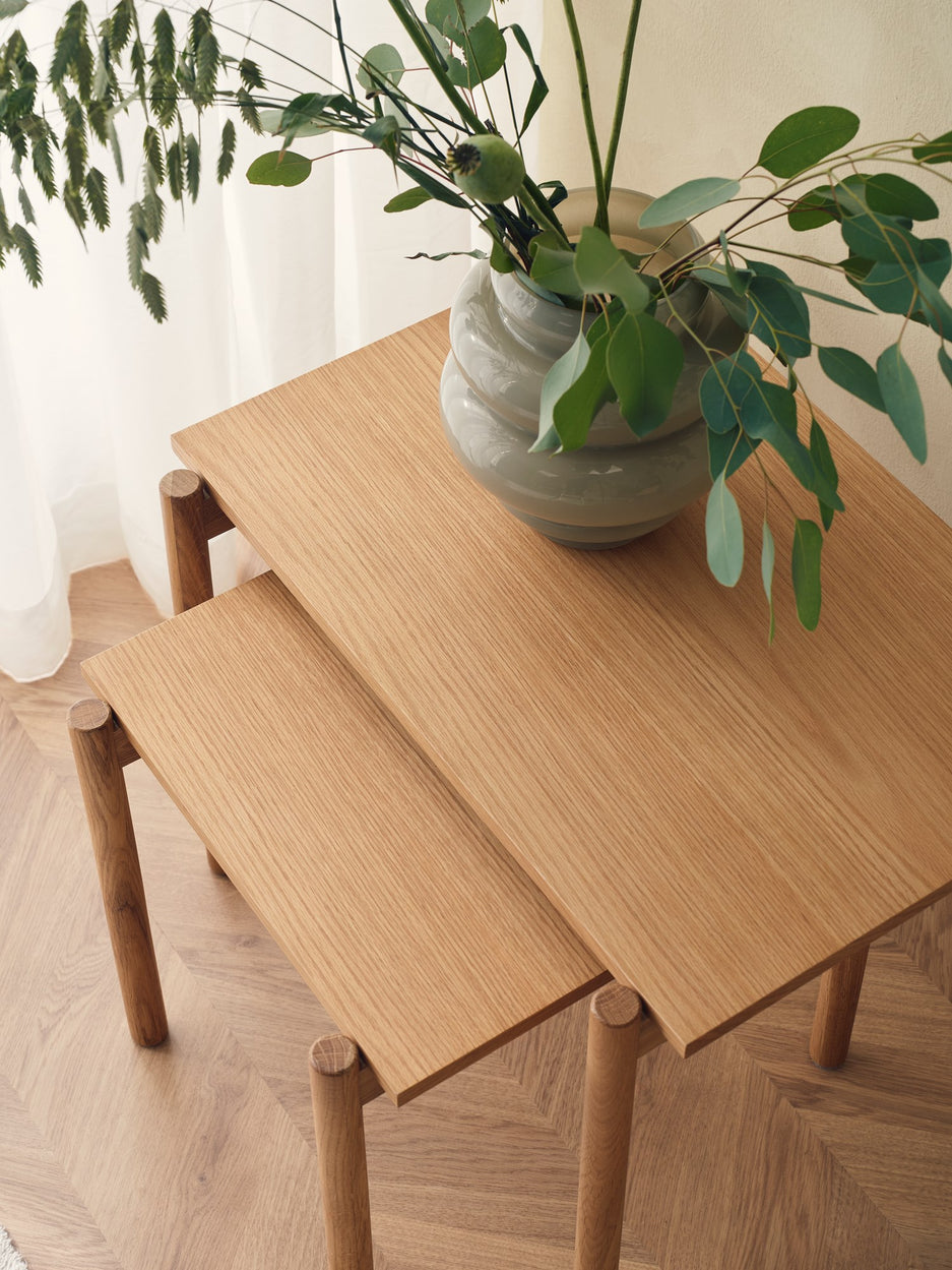 Anna smiles, “This side table brings a calm little scene beside the sofa, a lovely spot for a lamp and blooms.” Clara adds, “Its compact shape helps with daily order, keeping books and a warm cup close at hand.”