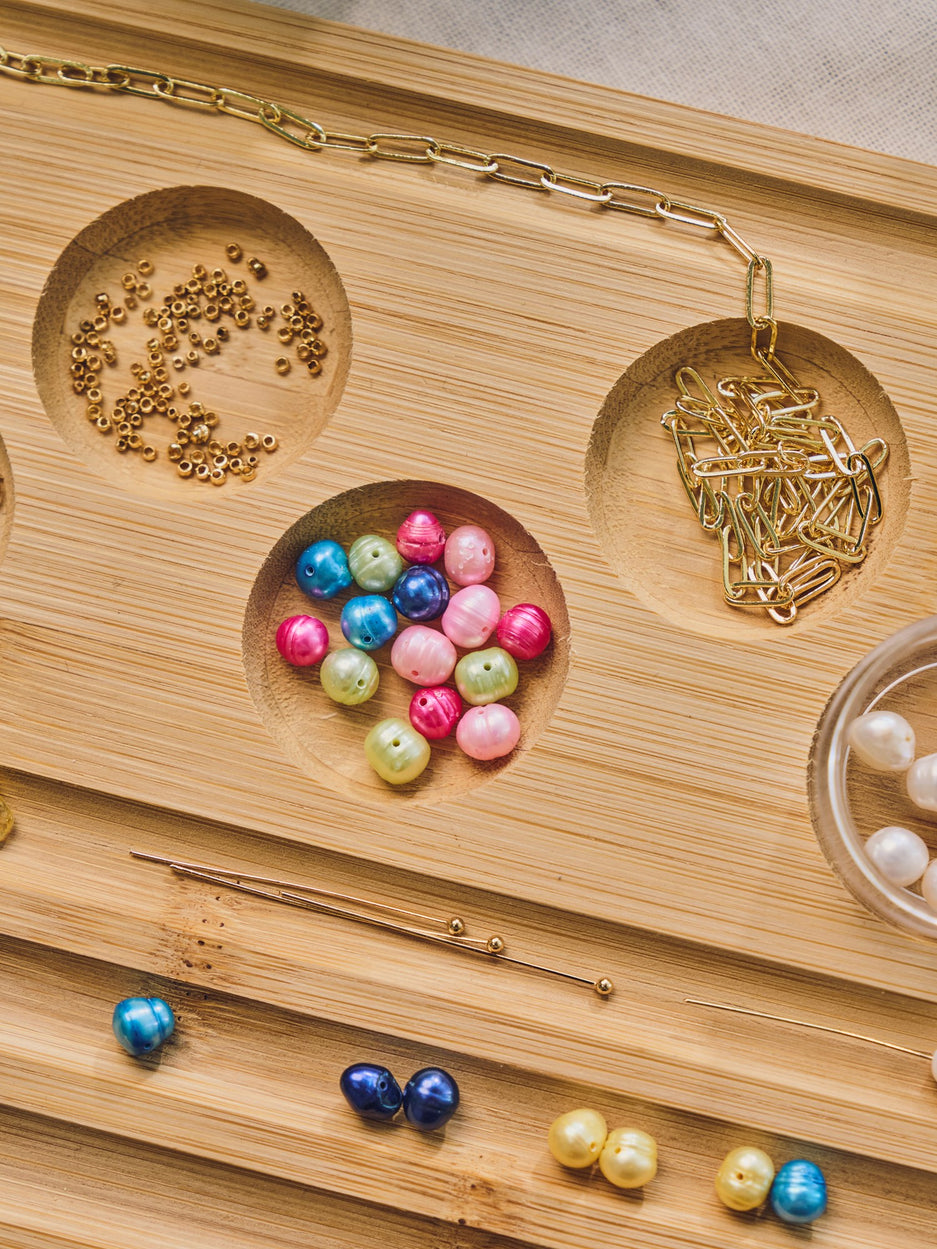 "Imagine the elegance of handmade jewellery," Anna says as she admires the freshwater beads. "A charming way to express creativity," Clara adds, appreciating their varied hues.