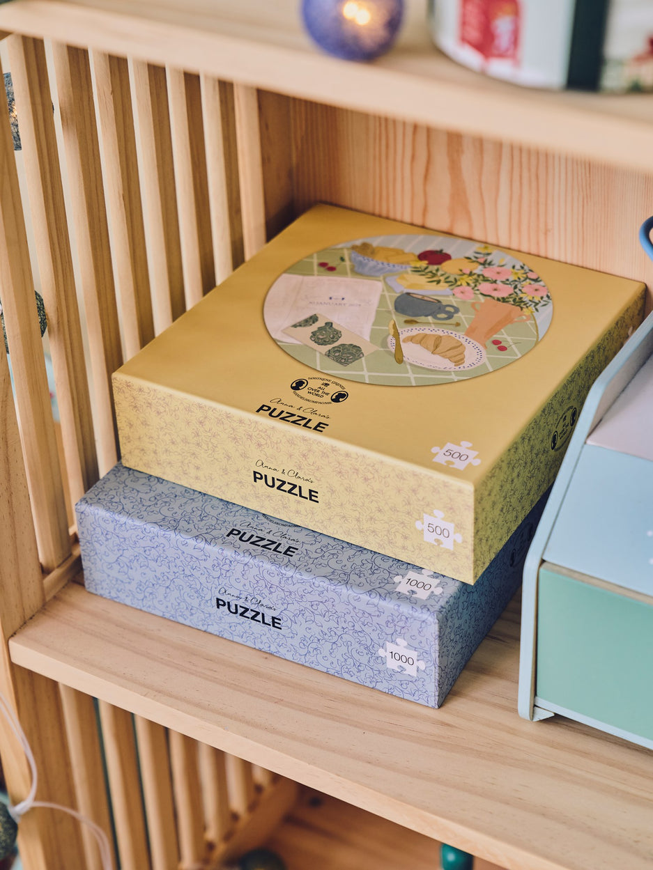 In the cosy family room, Anna and Clara have laid out a delightful puzzle challenge for the children to enjoy on rainy afternoons. "A 500-piece journey of creativity and patience awaits," Clara notes with a smile.