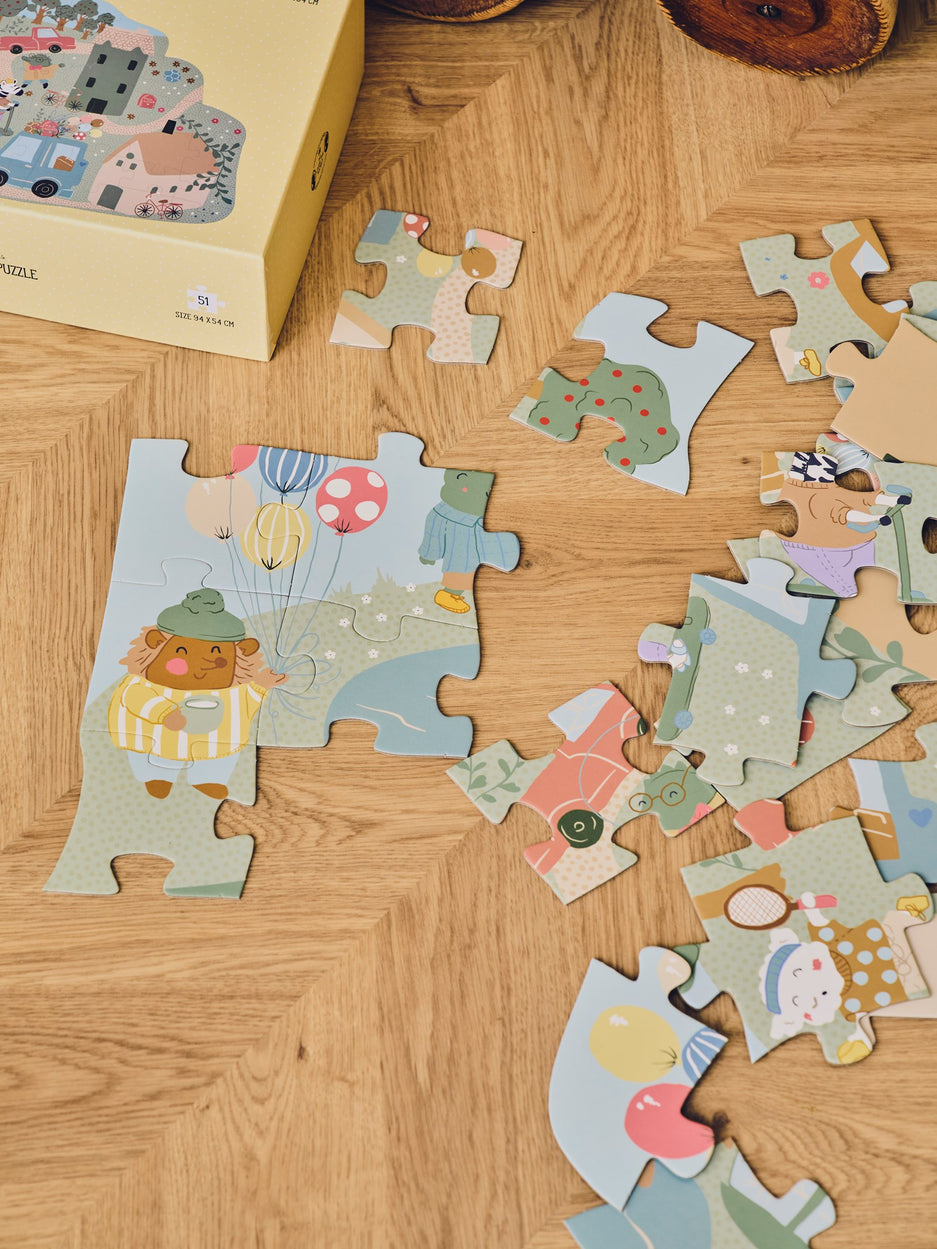 The nieces eagerly fit each piece of the jumbo puzzle together, while their nephew delights in the emerging scene. "A grand adventure for curious minds," Clara notes warmly.