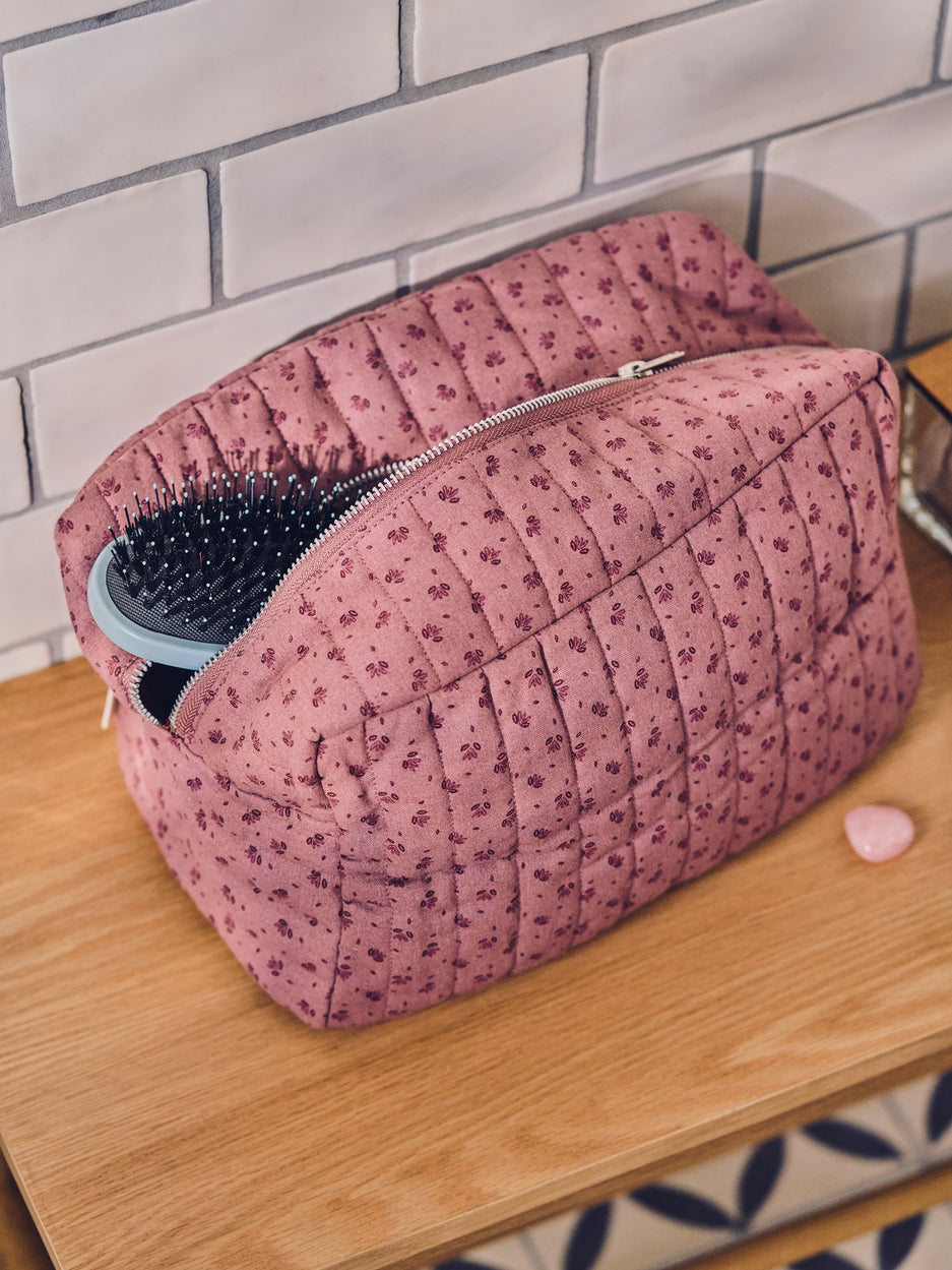 "This quilted toilet bag is perfect for our adventures," Clara notes, carefully placing her toiletries inside. Anna observes, "It provides both style and convenience for our journeys."